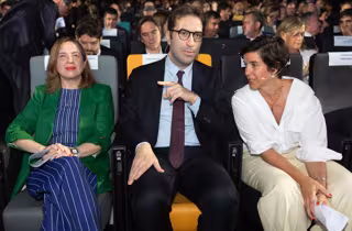 El ministro de Economía, Comercio y Empresa, Carlos Cuerpo (c), la secretaria de Estado de Comercio, Amparo López Senovilla (i), y por la consejera delegada del ICEX, Elisa Carbonell (d), druante el ‘Foro ICEX 2025’, en la Nave Madrid, a 10 de julio de 20 - Eduardo Parra - Europa Press