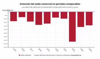 Además, los datos referidos únicamente al mes de julio reflejan una reducción del déficit comercial hasta los 3.213,8 millones de euros, que supone una caída del 34,4% con respecto al del mismo mes del año 2023 (4.902,6 millones).