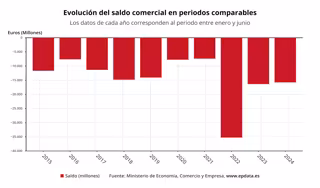 Los datos únicamente del mes de junio reflejan que el déficit comercial se redujo en el sexto mes del año un 70% con respecto al del mismo mes del año anterior, hasta los 2.355,2 millones de euros gracias a la fortaleza del sector exterior.