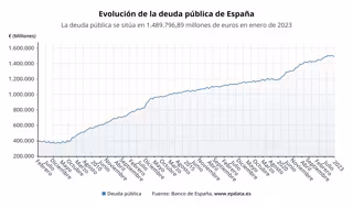 Por administraciones, la deuda del Estado se situó en enero en 1.319.213 millones de euros, un 6,2% más que hace un año, pero un 0,9% inferior respecto al mes pasado.