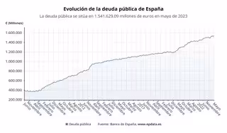 La deuda del conjunto de las administraciones públicas alcanzó en mayo los 1,541 billones de euros, nuevo máximo histórico, tras crecer más de un 1% en tasa mensual, después del descenso que registró en abril, según los datos publicados este martes por el Banco de España.