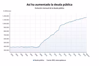 Con el incremento en septiembre, la deuda pública sube por segundo mes consecutivo y recupera la senda alcista de que ha venido marcando en los últimos años, tras el retroceso de julio (-0,3%), y supera el máximo histórico registrado en el mes de junio de este año (1,163 billones de euros).