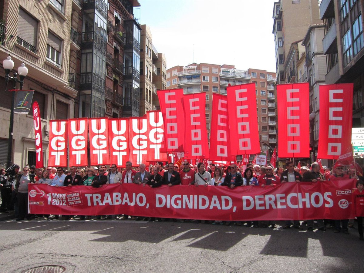 UGT y CC.OO. se manifestaron por última vez con motivo del Día del Trabajo para expresar su rechazo a la reforma laboral y a la política de recortes en la que "se ha empecinado" el Gobierno de Mariano Rajoy, al que advirtieron de que seguirán saliendo a la calle "hasta que esto acabe".
