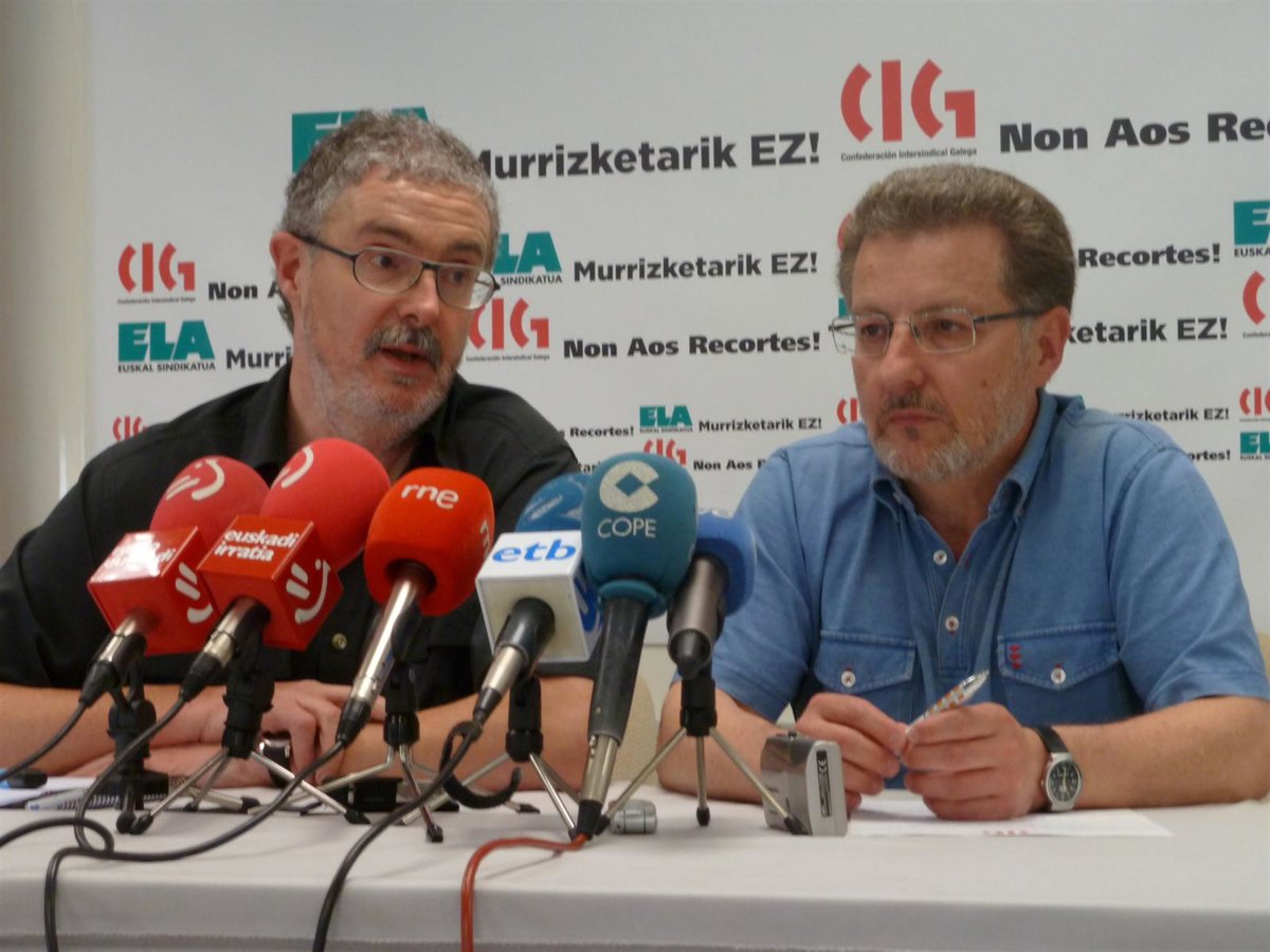 En una rueda de prensa celebrada en San Sebastián, el secretario general de ELA, Adolfo Muñoz 'Txiki', acompañado del secretario general de CIG, Suso Seixo, ha opinado que "se ha organizado un complot, una conspiración para hacer un saqueo a las cuentas públicas y para hacer todo lo posible para que los dineros del gasto social vayan a pagar los agujeros que han provocado personas concretas".