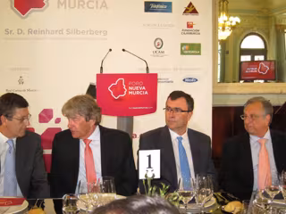 Así como el presidente del Grupo Fuertes, Tomás Fuertes; el presidente de la Fundación Cajamurcia, Carlos Egea; delegado de Iberdrola en la Región de Murcia, Patricio Valverde; el presidente de la UCAM -y presidente del Foro-, José Luis Mendoza; de Telefónica España, Javier Castro Pérez; de Llorente & Cuenca, Sandra Barboni; Antonio Expósito, de Mapfre; y José Luque de Repsol, todos ellos patronos del Foro.