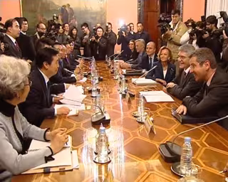 Tras una breve entrevista entre ambos mandatarios, se ha celebrado una reunión de trabajo entre la delegación china y una delegación española, presidida por la vicepresidenta segunda y de la que también ha formado parte el ministro de Industria, Turismo y Comercio, Miguel Sebastián.