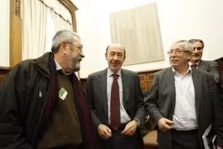 Rubalcaba apoya a CC.OO. y UGT en su petición de más tiempo para cumplir el déficit y luchar contra el paro