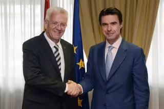 El ministro de Industria, Energía y Turismo, José Manuel Soria, se ha reunido este martes con el presidente del lander alemán Baden-Wurtemberg, Winfried Kretschmann, un encuentro en el que han tratado sobre las industrias del automóvil y farmacéutica o la reforma energética, entre otros temas.