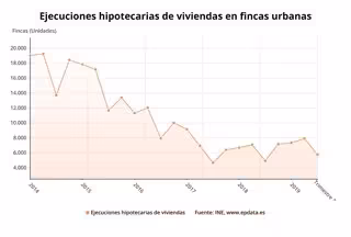 Dentro de las fincas urbanas, 5.775 ejecuciones correspondieron a viviendas, un 27,1% menos en tasa intertrimestral y un 17,2% más en términos interanuales, y de ellas 1.292 eran ejecuciones sobre viviendas de personas físicas, un 34,9% menos que en el trimestre anterior y un 23% inferior a la del tercer trimestre de 2018.