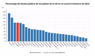 Asimismo, entre los países de la eurozona al cierre del cuarto trimestre de 2022 la deuda pública alcanzó el 91,6% del PIB, frente al 93% del trimestre anterior y el 95,5% de un año antes.