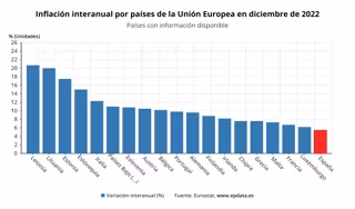 Por el contrario, las tasas de inflación armonizada menos intensas en diciembre correspondieron a España (5,5%), Luxemburgo (6,2%) y Francia (6,7%).