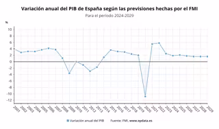 En cuanto a la tasa de inflación, el FMI prevé que España cierre el presente año con una subida de los precios del 2,4%, una décima más que la zona euro, mientras que en 2025 será del 2,2% en España y del 2% en la eurozona, para coincidir en el 1,9% al final de 2026.