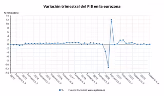 En comparación con el cuarto trimestre de 2022, el PIB de la zona euro creció un 0,1% interanual, mientras que el de los Veintisiete avanzó un 0,2%.