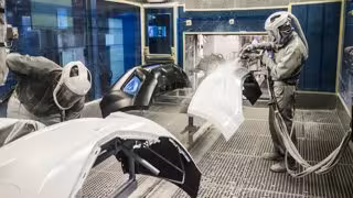 Dos operarios trabajan en la planta de pintura de la fábrica de Nissan en la Zona Franca de Barcelona - EURECAT/NISSAN - Archivo