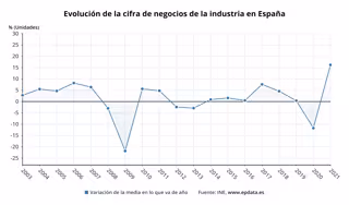 La cifra de negocios de la industria aumentó una media del 16,2% en 2021, su mayor repunte desde el año 2002, cuando se inicia la serie, según los datos difundidos este martes por el Instituto Nacional de Estadística (INE).