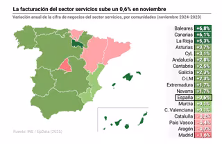 Trece comunidades autónomas elevaron la cifra de negocios del sector servicios en noviembre de 2024 en relación al mismo mes de 2023 y cuatro registraron descensos.