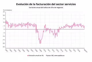 En términos mensuales (agosto sobre julio) y eliminado el efecto de calendario y la estacionalidad, la facturación del sector servicios repuntó un 0,1%, frente al avance del 0,2% que experimentó en julio y el aumento mensual del 1,3% registrado en agosto de 2018.