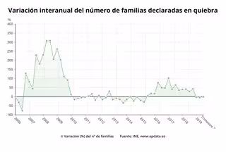 Las familias que se declararon en concurso de acreedores (suspensión de pagos y quiebras) ante la imposibilidad de afrontar sus pagos y deudas bajaron un 0,5% en el tercer trimestre del año en relación al mismo periodo de 2018, hasta sumar 421, con lo que acumulan ya cinco trimestres a la baja.