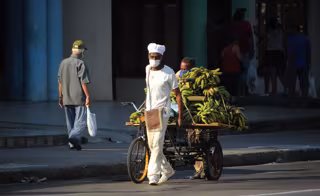Archivo - Un vendedor con mascarilla por el coronavirus en una calle de La Habana - Guillermo Nova/dpa - Archivo