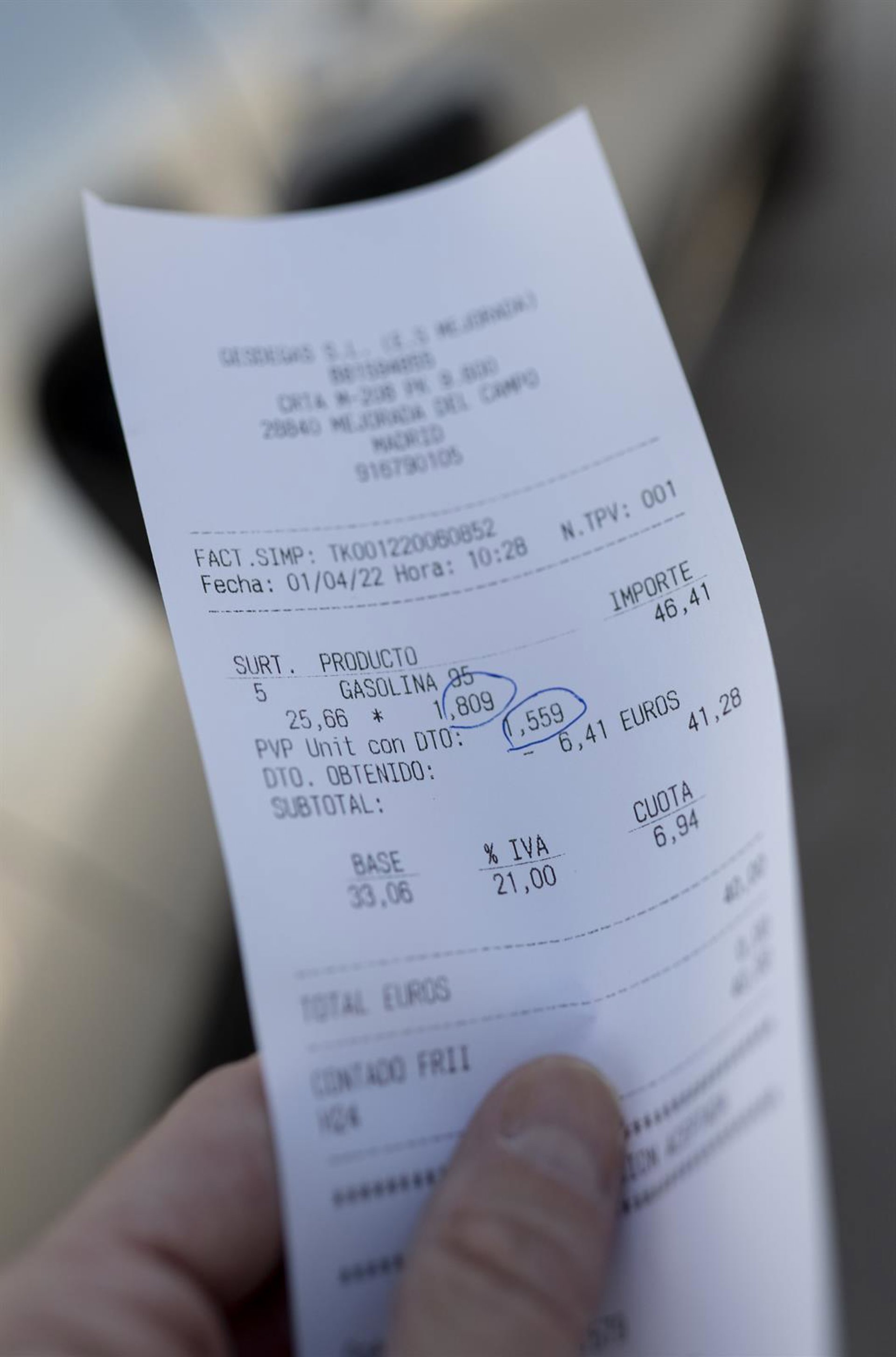 Archivo - Un ticket que contiene la rebaja de 20 céntimos al combustible - Alberto Ortega - Europa Press - Archivo