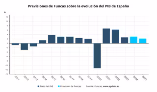 La Fundación de las Cajas de Ahorros (Funcas) ha elevado medio punto su estimación para el crecimiento del Producto Interior Bruto (PIB) española este año 2024 hasta el 3%, al tiempo que ha proyectado una tasa de evolución económica del 2,1% en 2025, frente al 1,8% de la anterior previsión.