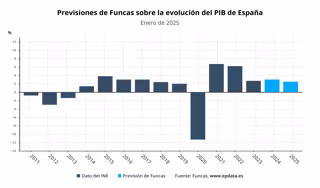 El centro de análisis de Funcas espera que el ciclo expansivo de la economía española se prolongue durante 2025, con un avance del PIB del 2,4%, tres décimas más respecto a su previsión de octubre, según las nuevas proyecciones publicadas este jueves por la Fundación.