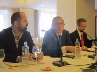 El presidente de Gestha, Carlos Cruzado; el secretario general, José María Mollinedo y el portavoz en Canarias, Carlos Fernández, en un desayuno informativo - EUROPA PRESS - Archivo