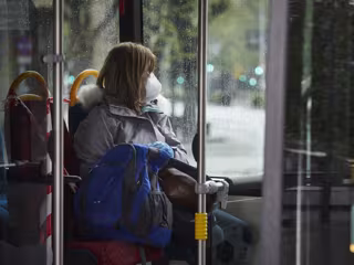Una mujer con mascarilla en un autobús urbano durante el Martes Santo y la cuarta semana del estado de alarma decretado por el Gobierno por la crisis del coronavirus - Eduardo Sanz - Europa Press