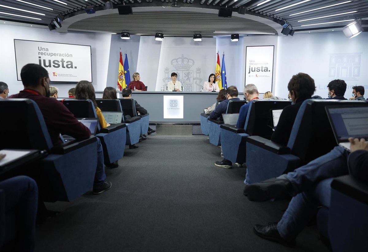 La ministra Portavoz, Isabel Rodríguez, la vicepresidenta segunda y ministra de Trabajo y Economía Social, Yolanda Díaz, y la ministra de Sanidad, Carolina Darias, en una rueda de prensa posterior al Consejo de Ministros, en el Complejo de La Moncloa, a - EUROPA PRESS/E. Parra. POOL - Europa Press