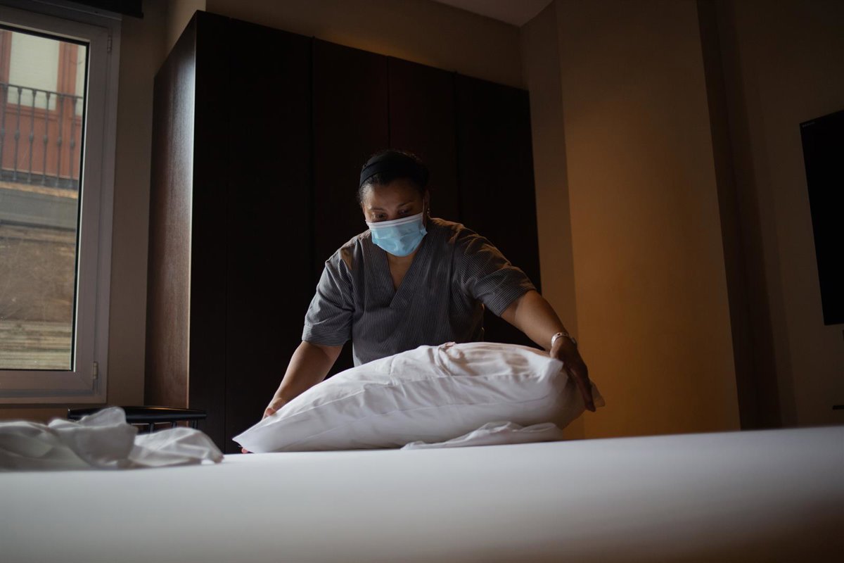 Una camarera de pisos cambia las sábanas de una cama - David Zorrakino - Europa Press