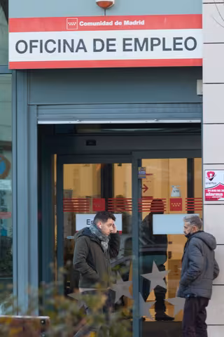 Archivo - Dos personas en la puerta de la oficina del Servicio Público de Empleo Estatal (SEPE) de la calle de Méndez Álvaro, a 3 de enero de 2023, en Madrid (España). El paro registrado en las oficinas de los servicios públicos de empleo registró en 20 - Jesús Hellín - Europa Press - Archivo