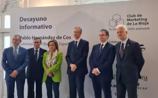 Hernández de Cos ha intervenido en un desayuno informativo, que se ha desarrollado en el Círculo Logroñés. Antes de su intervención, le han dado la bienvenida el presidente del Club de Marketing de La Rioja, Juan Ángel Zubeldia, y el presidente de Ibercaja, Francisco Serrano.