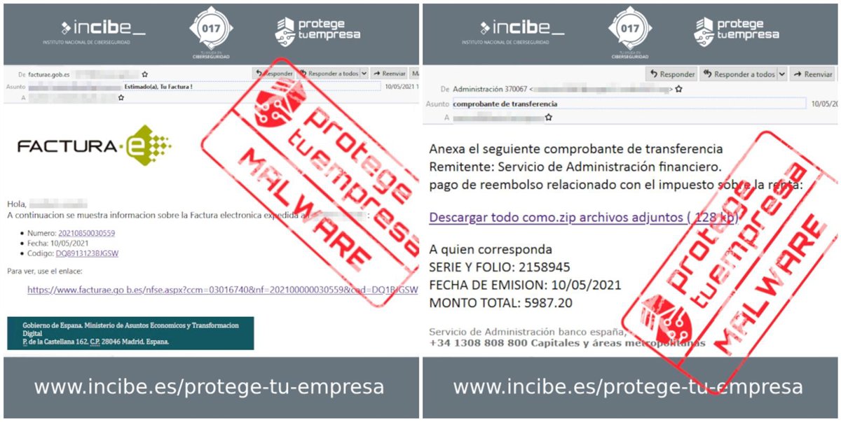 Otra campaña tiene como objetivo suplantar al servicio de administración del Banco de España. Las víctimas reciben un correo que tiene como asunto "comprobante de transferencia", donde le solicitan descargar un supuesto comprobante de transferencia de un reembolso realizado a su favor. Al pulsar en el enlace, redirige a una página donde solicita descargar un archivo .zip que también contiene 'malware'.