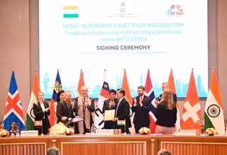 El Gobierno de la India ha suscrito un Acuerdo de Asociación Económica y Comercial con Noruega, Suiza, Islandia y Liechtenstein, los cuatro países que forman la Asociación Europea de Libre Comercio (AELC), que compromete inversiones en el país asiático de 100.000 millones de dólares (91.409 millones de euros) en los próximos 15 años y la creación de un millón de puestos de trabajo.