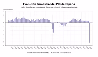 La economía española acusó el impacto de la crisis del coronavirus y retrocedió un 5,2% en el primer trimestre, su mayor desplome trimestral registrado en la serie histórica del Instituto Nacional de Estadística (INE), que arranca en 1970. Hasta ahora, la mayor caída trimestral del PIB era la del primer trimestre de 2009 (-2,6%).
