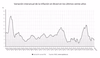 MADRID, 11 Jun. (EUROPA PRESS) - El Índice de Precios al Consumidor (IPC) de Brasil ha aumentado en 0,24 puntos porcentuales en mayo respecto a abril, situándose en el 3,93% interanual, lo que le lleva a dejar atrás la racha de siete meses consecutivos a la baja.
