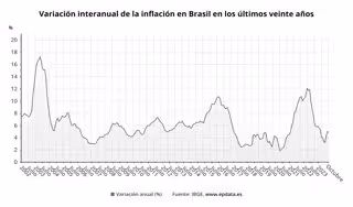 Según ha informado este viernes el Instituto Brasileño de Geografía y Estadística (IBGE), la inflación vuelve a niveles de marzo, cuando se situaba en el 4,65% interanual y se encontraba en pleno proceso de desaceleración.