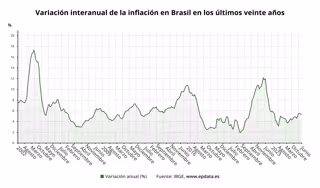 El Índice Nacional de Precios al Consumidor (IPCA) de Brasil se situó en el 5,35% interanual en junio, ligeramente por encima del 4,23% registrado en el mismo mes del año anterior, según ha divulgado este jueves el Instituto Brasileño de Geografía y Estadística (IBGE).
