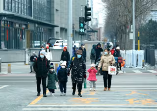 Archivo - 18 February 2022, China, Beijing: Families cross a street. Photo: Andrew Milligan/PA Wire/dpa - Andrew Milligan/PA Wire/dpa - Archivo