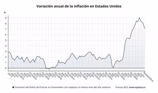 La tasa de inflación de Estados Unidos se situó el pasado mes de noviembre en el 7,1% en términos interanuales, lo que supone un descenso de seis décimas respecto al dato de octubre, encadenando así cinco meses de moderación y registrando el menor incremento de precios de todo 2022, según se desprende de los datos difundidos este martes por la Oficina de Estadísticas Laborales del Departamento de Trabajo del país.