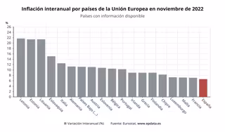 Por contra, las tasas de inflación armonizada menos intensas en noviembre correspondieron a España (6,6%), Francia (7,1%) y Malta (7,2%).