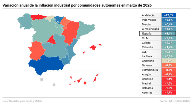Con la tasa interanual del tercer mes de 2026, en la que ya se notan los efectos de la guerra en Irán, la inflación del sector industrial retoma los ascensos después de haber encadenado cuatro meses en negativo.