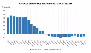 La moderación de la inflación industrial de abril fue consecuencia de la evolución de los precios de la energía y los bienes intermedios, que elevaron sus tasas interanuales 4,2 y nueve décimas, respectivamente, hasta el -20,5% y el -4,2%.