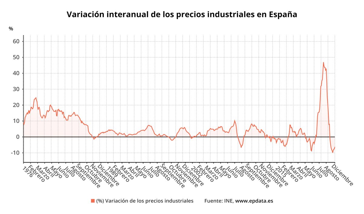 LOS PRECIOS INDUSTRIALES MODERAN SU CAÍDA EN DICIEMBRE AL 6,3%