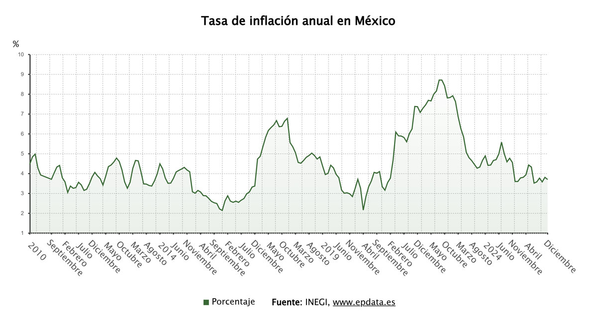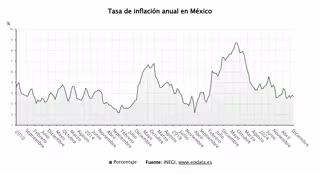 El Índice Nacional de Precios al Consumidor (INPC) de México se situó en el 3,69% interanual al cierre del 2025, lo que supone un repunte del 0,28% en diciembre respecto al mes anterior y un alza del 0,52% en comparación con el ejercicio previo, según los datos publicados por el Instituto Nacional de Estadística y Geografía (INEGI).