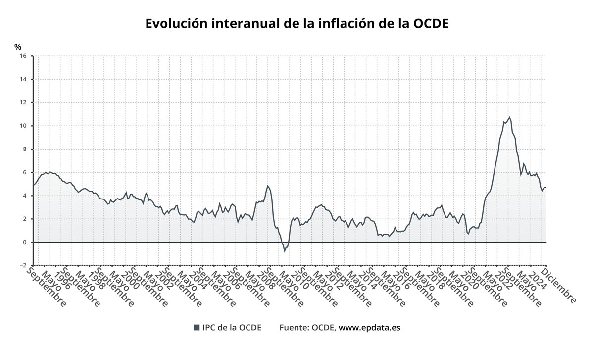 La tasa de inflación interanual de la Organización para la Cooperación y el Desarrollo Económico (OCDE) se situó en diciembre en el 4,7%, idéntica subida de los precios a la observada en noviembre.
