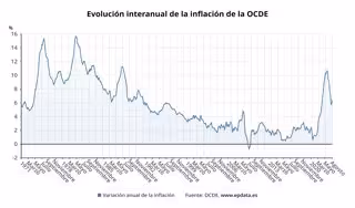 El índice de precios de consumo (IPC) de la Organización para la Cooperación y el Desarrollo Económico (OCDE) se situó en agosto en el 6,4%, cinco décimas por encima de la subida interanual de los precios en el mes anterior y el segundo encarecimiento consecutivo del coste de la vida desde octubre de 2022, según los datos publicados por el 'think tank' de las economías avanzadas.
