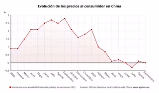 El Índice de Precios de Consumo (IPC) de China se situó el pasado mes de septiembre en el 0%, frente a la subida de una décima en el mes anterior, mientras que el índice de precios de producción industrial (PPI) alivió su contracción al 2,5% desde el retroceso del 3% en agosto, según ha informado la Oficina Nacional de Estadística (ONE).