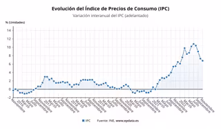 El Índice de Precios de Consumo (IPC) bajó una décima en noviembre en relación al mes anterior y recortó medio punto su tasa interanual, hasta el 6,8%, su cifra más baja desde enero, justo antes de declararse la guerra en Ucrania, cuando el IPC se situó en el 6,1%, según los datos avanzados publicados este martes por el Instituto Nacional de Estadística (INE).