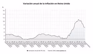 La tasa de inflación interanual del Reino Unido se situó el pasado mes de septiembre en el 6,7%, en línea con la subida de los precios del mes anterior, a pesar de las expectativas del mercado de una moderación del dato, según ha informado este miércoles la Oficina Nacional de Estadística británica (ONS, por sus siglas en inglés).